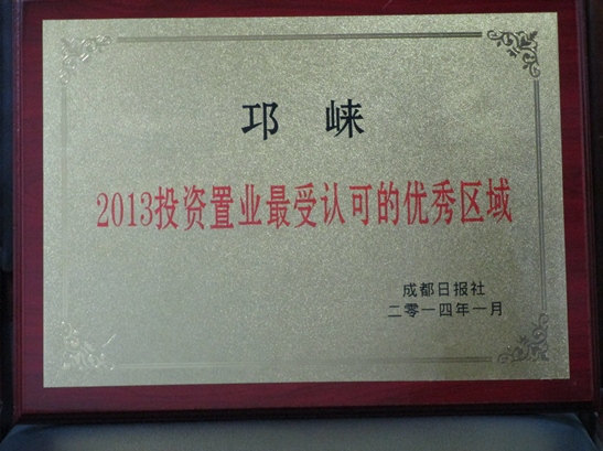 邛崃荣获“2013投资置业最受认可的优秀区域”称号