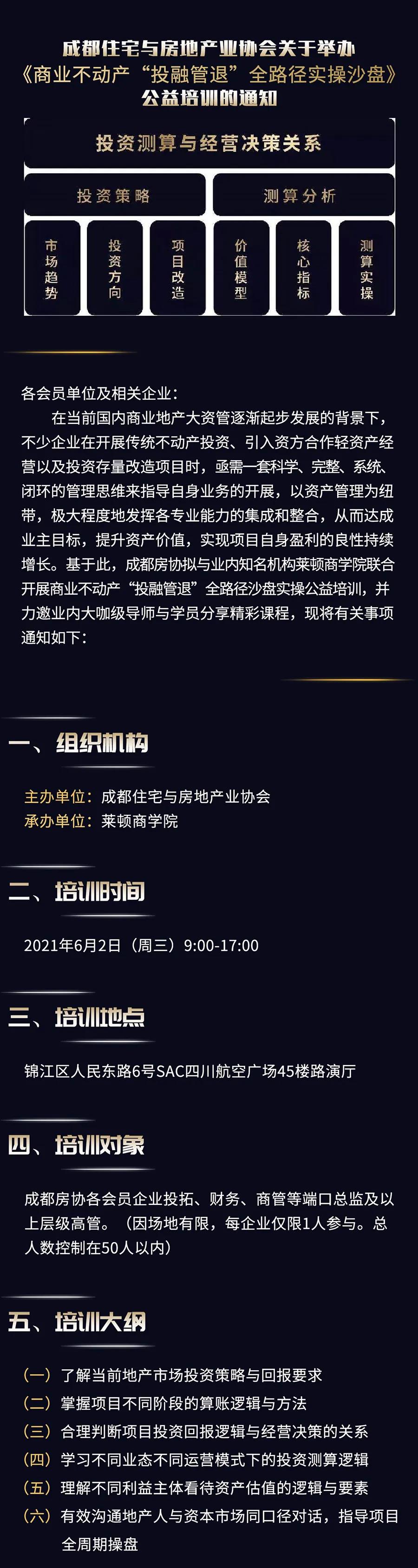 > 高端课程|成都房协关于举办商业不动产“投融管退”全路径沙盘实操公益培训的通知