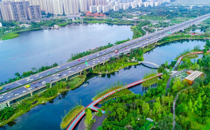 作为天府绿道的核心一环,成都环城生态公园正着力打造133平方公里的开放式多功能环状生态公园,助力成都打造世界最长、最具魅力的世界级生态风景绿道。成都拓高乐场馆周边的锦城湖公园,有蜿蜒的休闲步道,别致的五孔石桥,是骑行、跑步、拍照打卡的最佳去处之一。