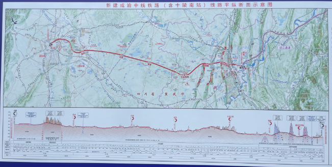 在铁路成都站(火车北站)举行的成渝中线高铁建设启动活动上,成渝中线高铁线路平纵断面示意图首次亮相,这条新高铁的沿线站点首次公开。