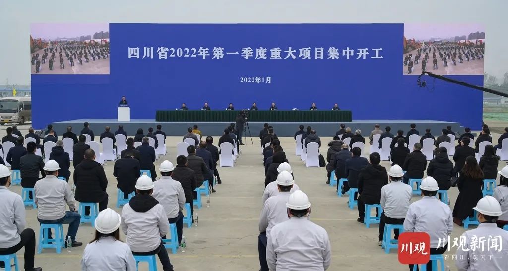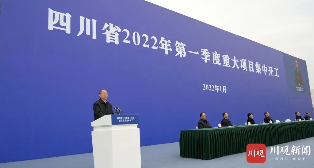 10时45分许,彭清华宣布:四川省2022年第一季度重大项目集中开工。此次集中开工10亿元以上重大项目100个、总投资2322亿元,涉及基础设施、现代产业、民生及社会事业等领域。