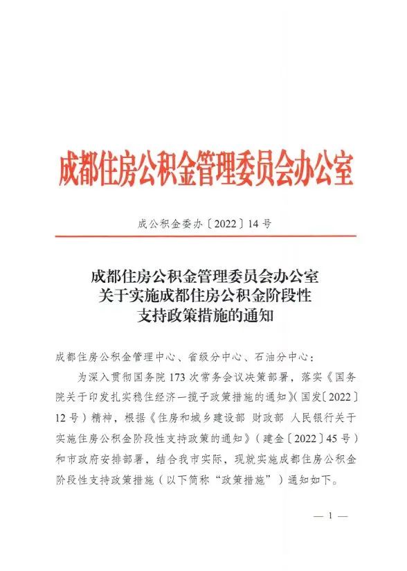 > 成都出台住房公积金阶段性支持政策措施