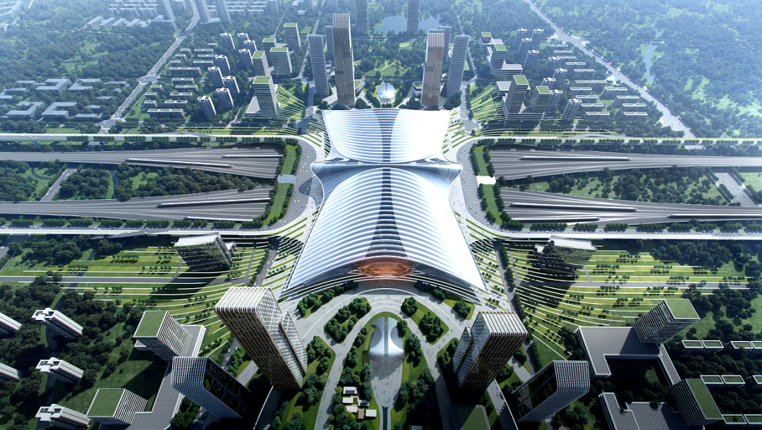 ↑近日,天府站正式开工,成都将新增一座高铁大站 图为项目效果图
