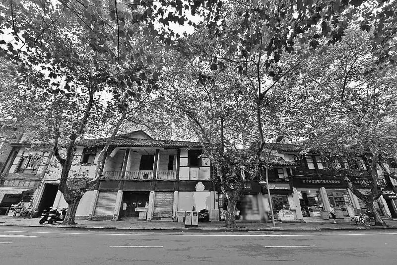 斑驳的梧桐树荫,古色古香的建筑