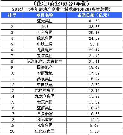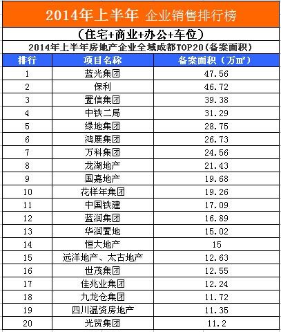成都楼市半年报:top20出炉 蓝光勇夺第一