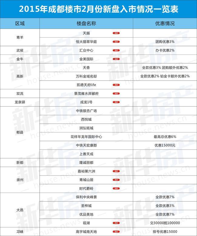 (2015年成都楼市2月份约24盘入市)