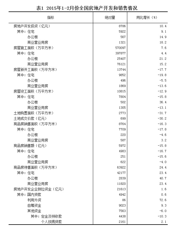 首页 > 行业新闻 > 2015年1-2月份全国房地产开发和销售情况