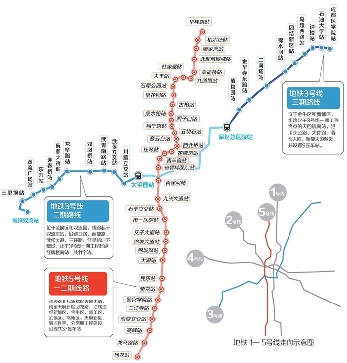 成都地铁3号线二、三期和5号线一、二期站点公布