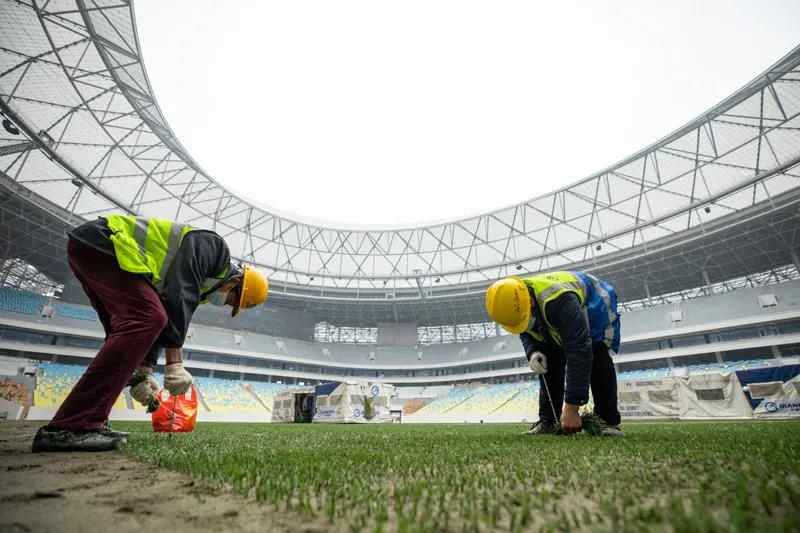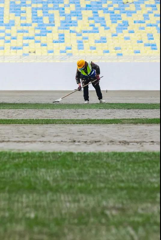 专业足球场内施工作业
