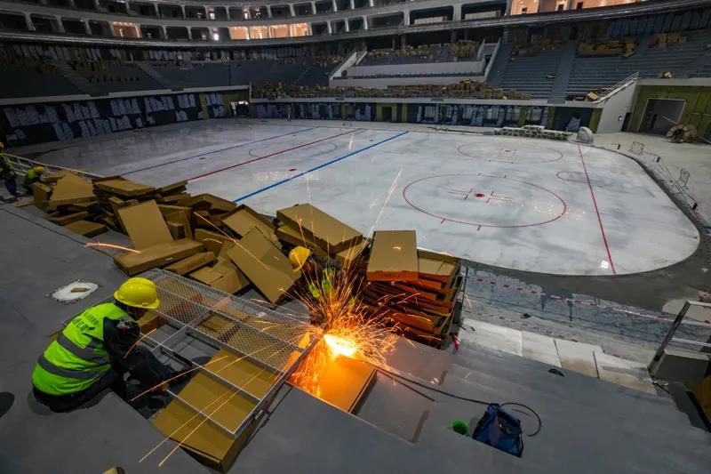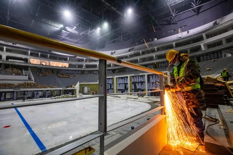 综合体育馆内安装护栏