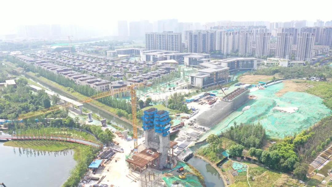 成昆桥全长1.1公里,东起锦城湖3号湖,中间穿过元华车辆段,止于美洲极限体育公园,除了跨越既有道路障碍,还将串联锦城湖与美洲时尚体育公园,是锦城公园的78座桥梁之一,将实现锦城公园串珠成链。正在施工的成昆线转体桥是锦城绿道100公里全环贯通的控制性关键节点,也是“画完整个圆环的最后一笔”,预计今年8月左右实现贯通。