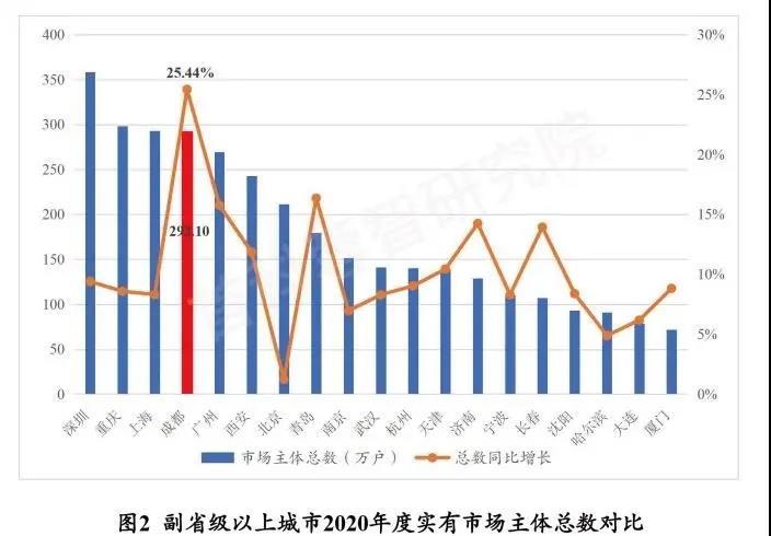《报告》分析了19个副省级及以上城市市场主体活跃度