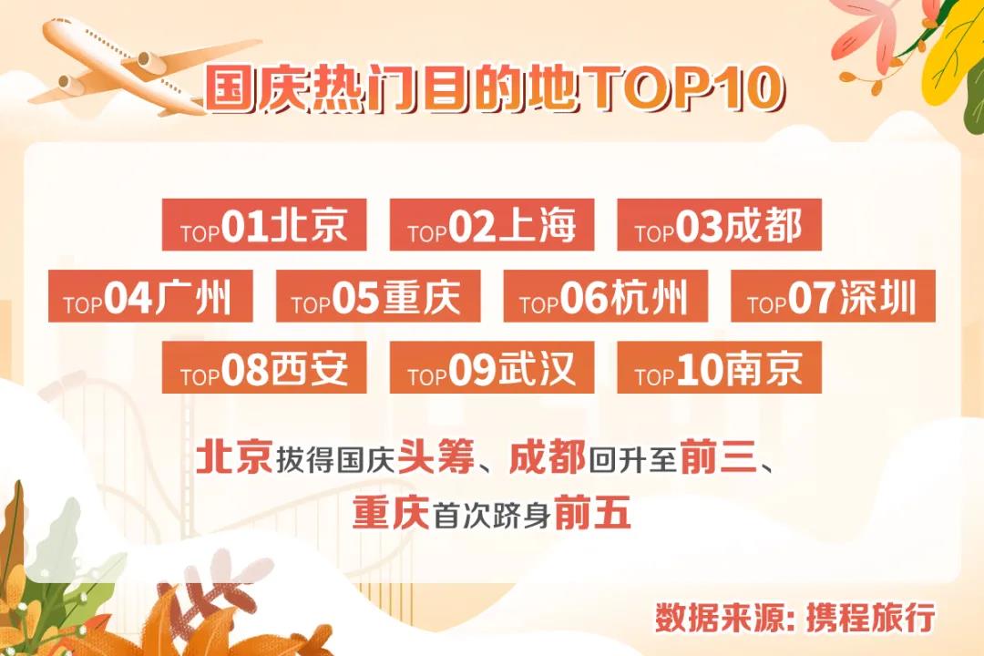 携程平台数据显示:成都位列“国庆TOP 10目的地”第三名。