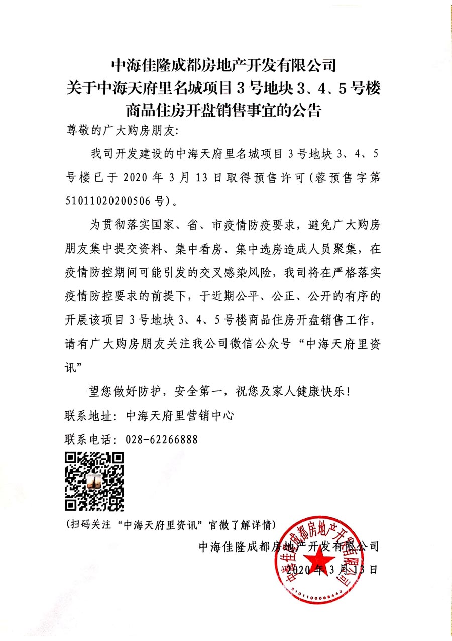 开盘销售公告