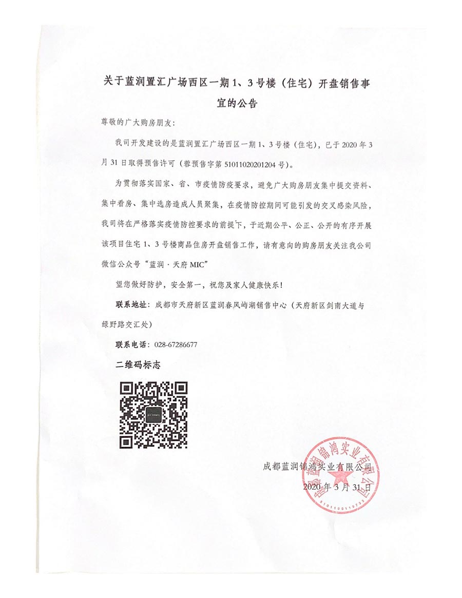 开盘销售公告