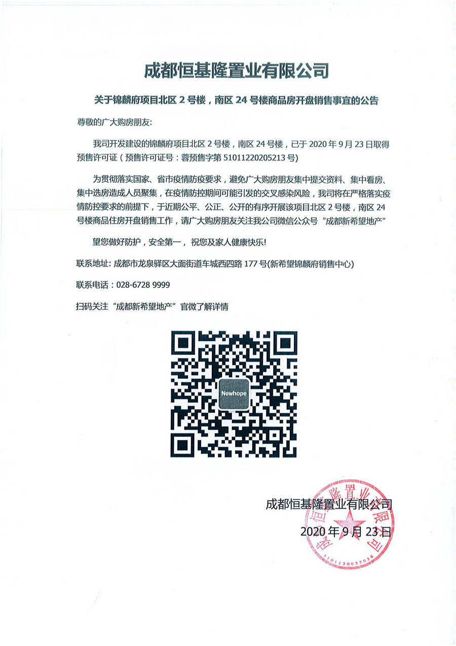 首页 > 最新项目预售公示 > 龙泉驿区 > 锦麟府