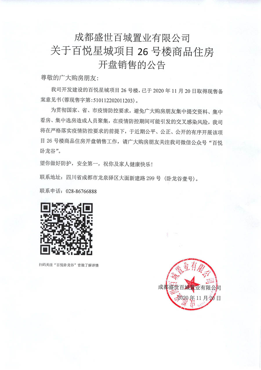 开盘销售公告
