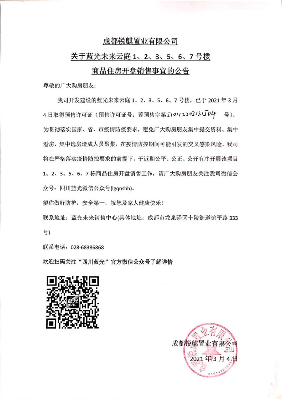开盘销售公告