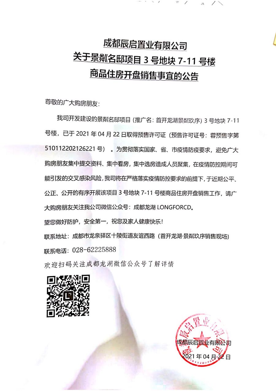首页 > 最新项目预售公示 > 龙泉驿区 > 景粼名邸